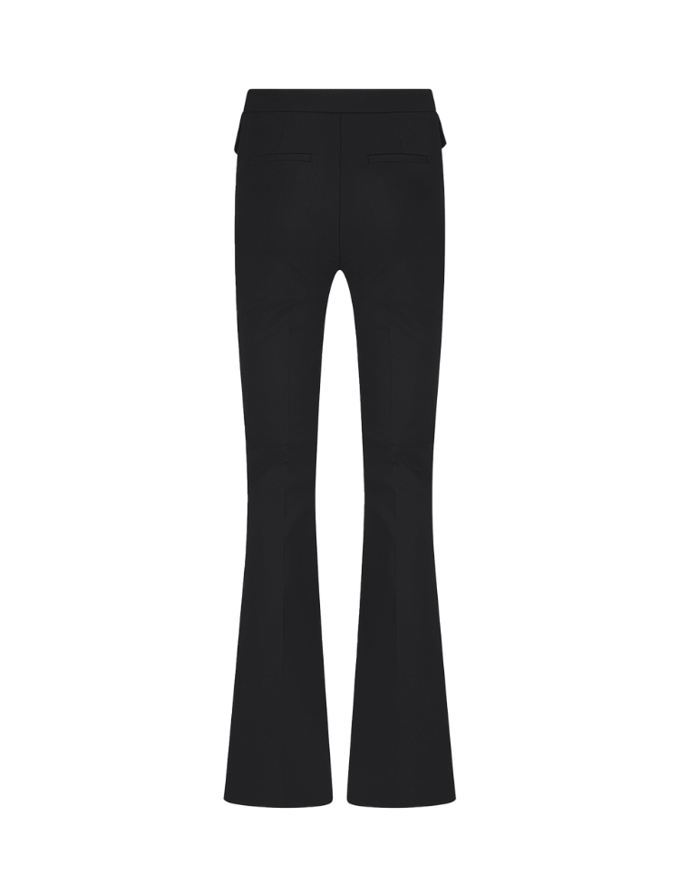 De Nikkie Lancastero Pants zijn de perfecte combinatie van elegantie en moderne flair. Deze flared pantalon met middelhoge taille creëert een lang en vrouwelijk silhouet dat zowel flatterend als tijdloos is. De uitlopende pijpen geven de broek een chique en trendy uitstraling, terwijl de klepzakken met knoopdetails zorgen voor een subtiele, luxueuze finishing touch. De ritssluiting garandeert een nette en comfortabele pasvorm, ideaal voor zowel zakelijke als casual gelegenheden.