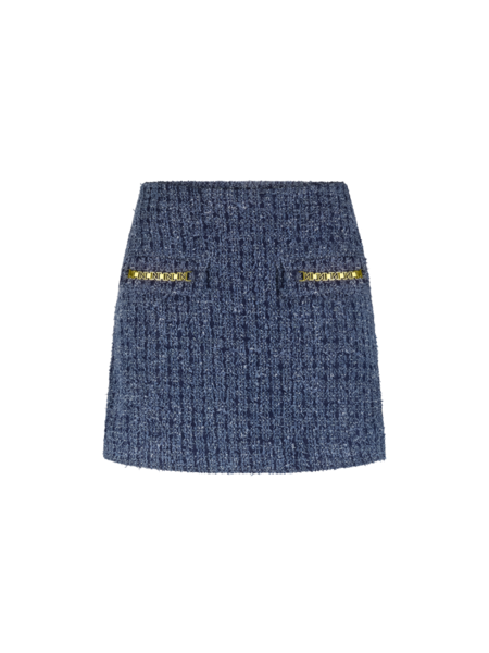 De aangesloten pasvorm en de hoge taille zorgen voor een flatterende, vrouwelijke silhouette. Wat deze skort écht bijzonder maakt, zijn de decoratieve zakjes aan de voorzijde afgewerkt met opvallende goudkleurige kettingdetails — dé finishing touch voor een classy powerlook met een edgy twist.