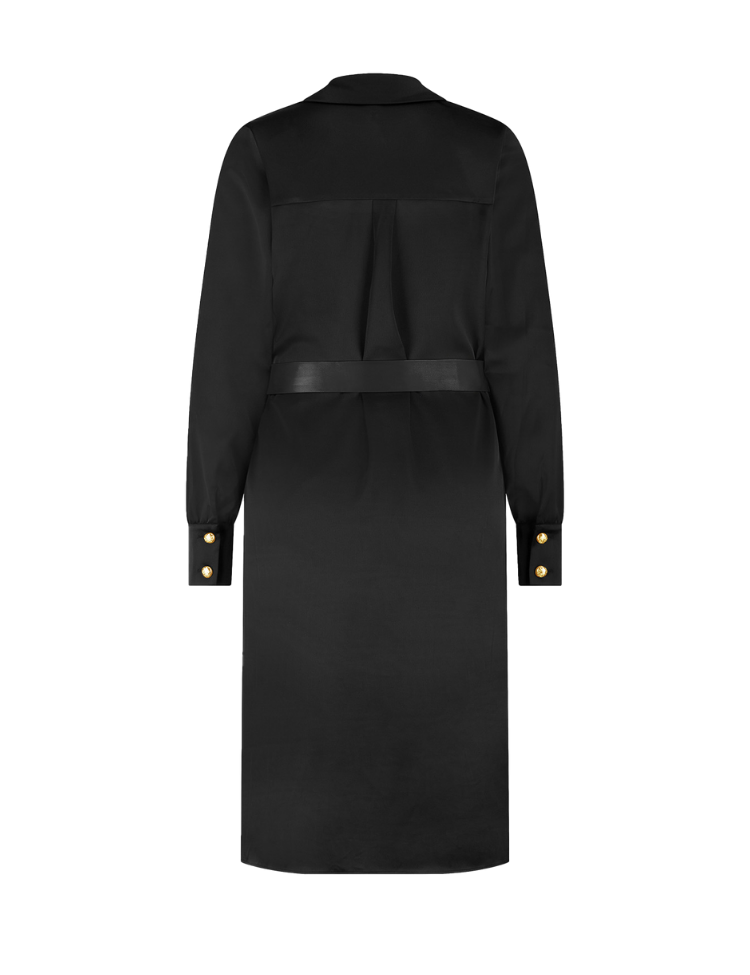 De Nikkie Lodi Midi Dress is een elegante eyecatcher met een moderne twist. De luxe satijnen stof geeft de jurk een vrouwelijke uitstraling, terwijl de losvallende pasvorm zorgt voor ultiem draagcomfort. Het ontwerp is afgewerkt met een doorlopende knoopsluiting, strikceintuur die de taille accentueert en een verfijnd kettingdetail op de borst.