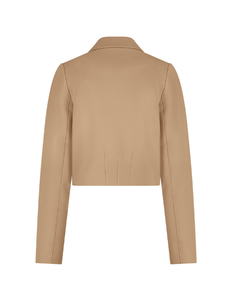 De gouden rits en het subtiele kettingdetail op de borst geven de jas een glam touch, terwijl de klassieke kraag en clean tailoring zorgen voor balans en elegantie. Dit jasje draag je zowel casual als chic – combineer het met een high-waisted pantalon voor een city look of over een jurk voor een modieuze twist.