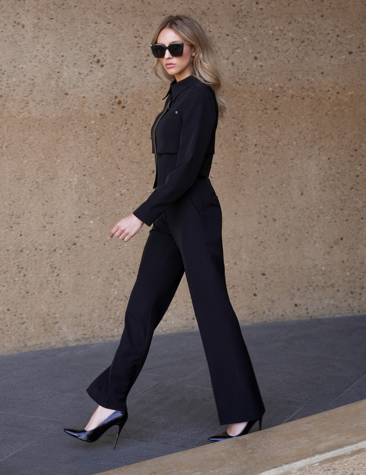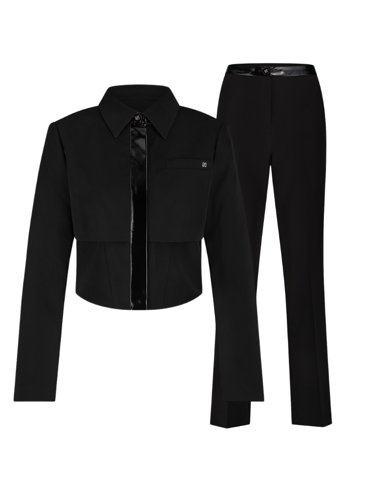 Nikkie Louisville Combi-Set in zwart met imitatieleren details en normale pasvorm.