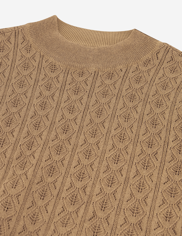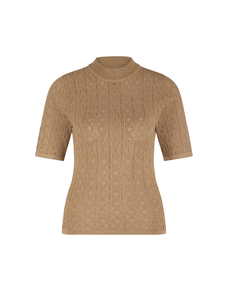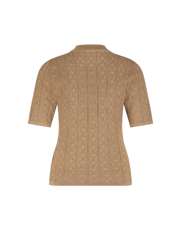 De Nikkie Luanda Top is de perfecte blend van vrouwelijke finesse en klassieke luxe. Deze fijngebreide top met korte mouwen is voorzien van een subtiel opengewerkt patroon dat zorgt voor een verfijnde, elegante uitstraling. De aangesloten pasvorm accentueert je silhouet op een flatterende manier, terwijl de licht opstaande col zorgt voor een sophisticated touch.