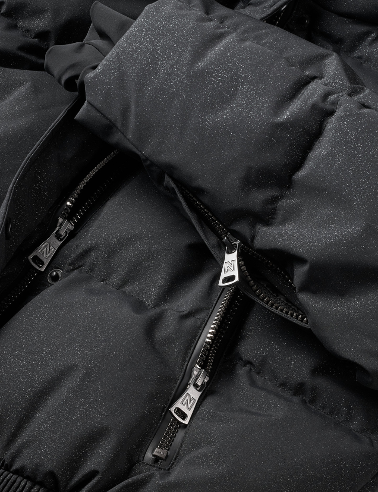 De getailleerde pasvorm zorgt voor een flatterend silhouet, en de subtiele glans geeft de jas een moderne, high-end uitstraling.