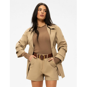 Draag deze beige short met de bijpassende blazer uit dezelfde collectie van Nikkie voor een complete look. Combineer het onderstuk met een aansluitende top in een neutrale of contrasterende tint en voeg een ceintuur toe in dezelfde kleurenfamilie voor extra definitie.