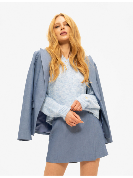 Deze Parisa skort van Nikkie combineert de look van een rok met het comfort van een short. De misty blue kleur geeft het item een frisse, eigentijdse uitstraling. De skort heeft een strakke, korte pasvorm en een wikkeldetail aan de voorzijde. Het geheel wordt afgesloten met een zilverkleurige logoknoop aan de zijkant. De stof is stevig en heeft een fijne textuur. De ingewerkte shortbroek zorgt voor functionaliteit. Een veelzijdig item dat je zowel zakelijk als casual kunt dragen.