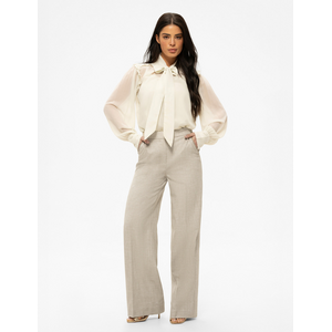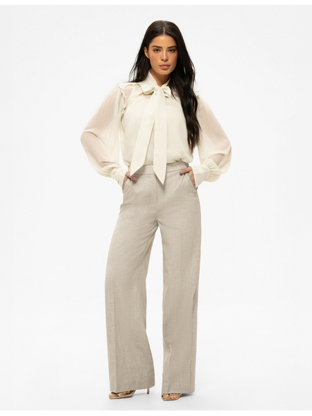 Combineer deze crèmekleurige pantalon met de bijpassende blazer voor een chic pak. Een blouse met strikdetail in ecru zorgt voor een verfijnde finishing touch. Nikkie ontwerpt items die je zowel zakelijk als tijdens vrije tijd kunt dragen.
