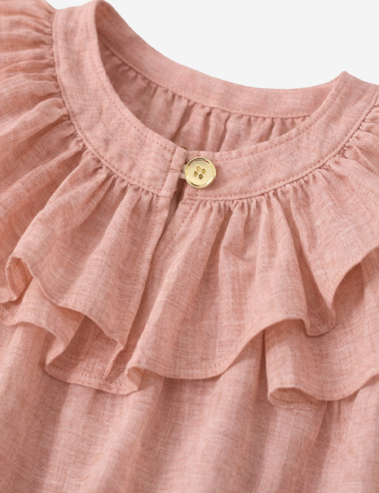 Design: Dubbele ruchelaag bij de halslijn, ruchesdetail op de mouwen