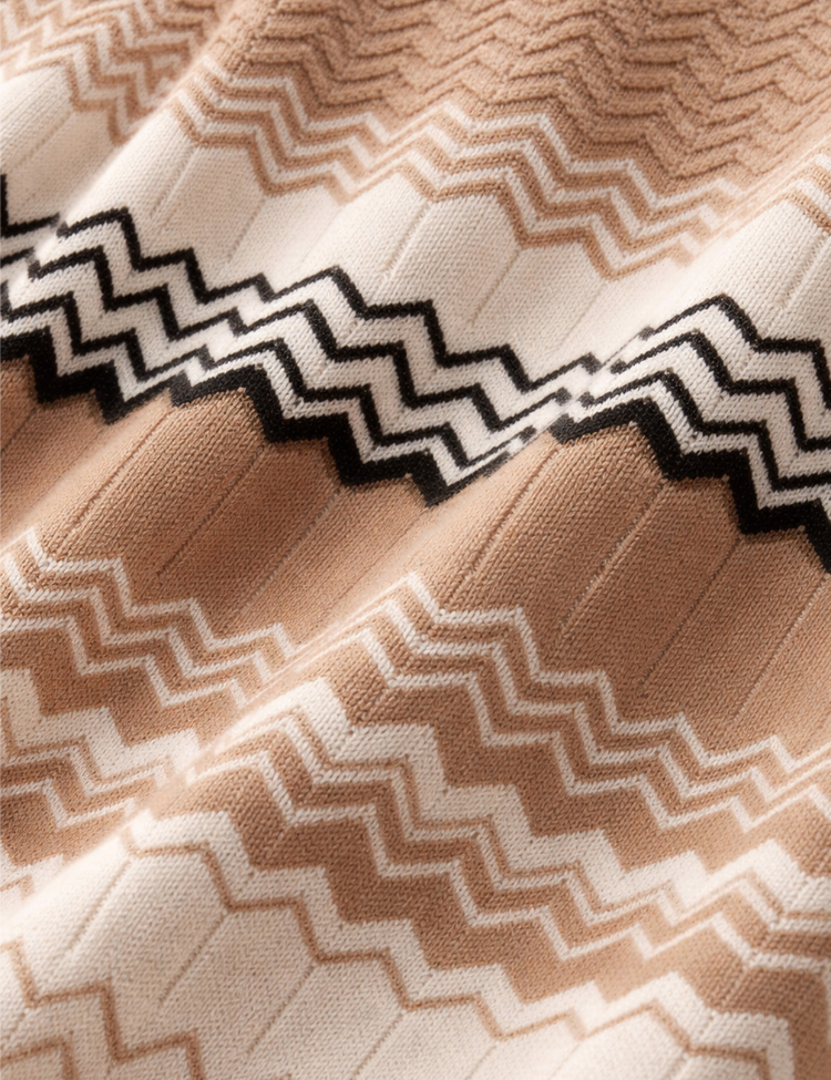 Kleur: Travertine met zigzagprint in beige, bruin en zwart