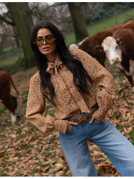 Travertine Leopard Blouse van Nikkie met Strikdetail