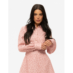 Deze rok van Nikkie combineert een speelse leopardprint in zachte blushinten met een gelaagd model. De rok heeft twee asymmetrische volants die voor beweging en volume zorgen. De elastische tailleband zorgt voor een comfortabele pasvorm. Het rokje valt net boven de knie en heeft een vrolijke uitstraling door de roze tinten in de animalprint. De gelaagde volants geven het geheel een speels karakter.
