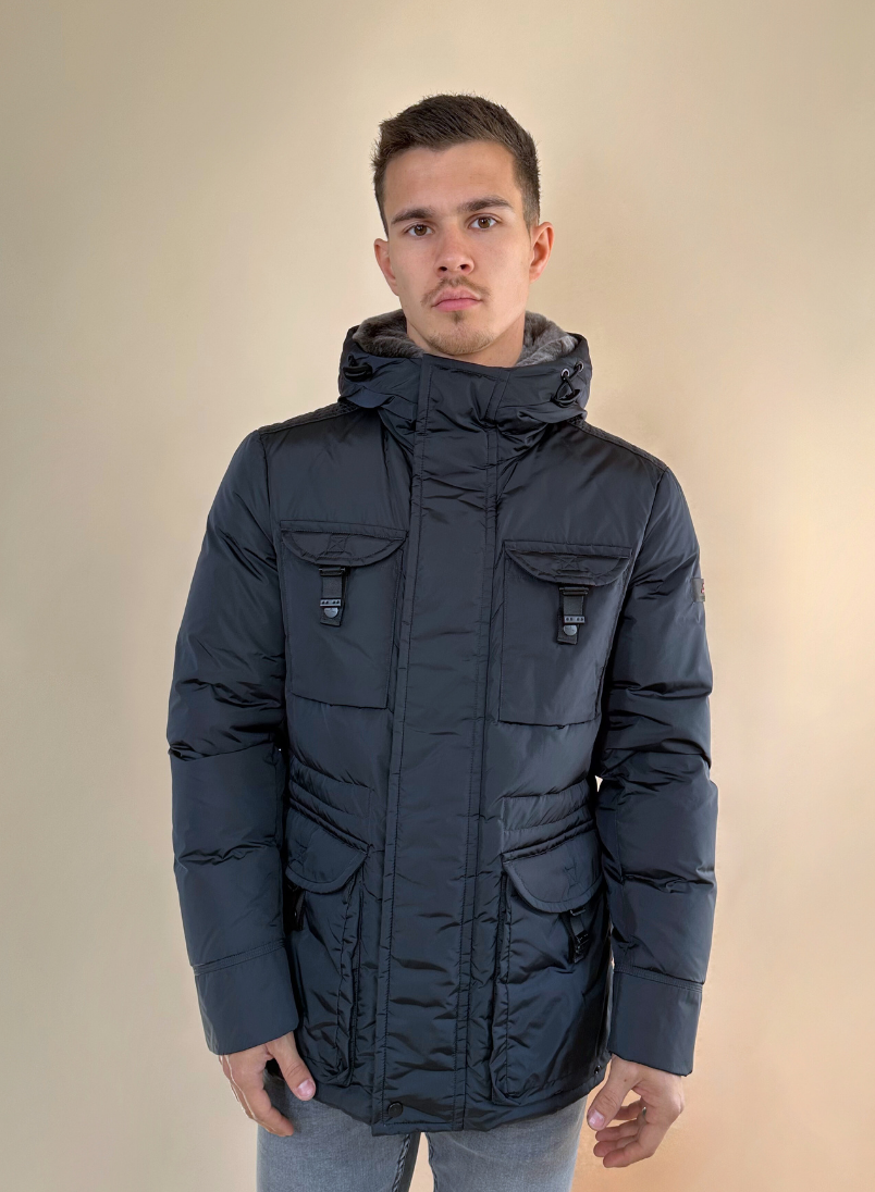De waterafstotende afwerking en winddichte manchetten maken dit model geschikt voor koude, natte winterdagen in de stad.