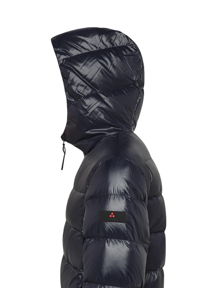 De gecertificeerde donsvoering (80% dons, 20% veer – Fill Power 650) zorgt voor uitstekende warmte-isolatie en ademend vermogen. Het waterafstotende, PFC-vrije materiaal garandeert bescherming tegen regen zonder schadelijke stoffen. De jas heeft een afneembare en verstelbare capuchon, een dubbele ritssluiting, verborgen zijzakken en winddichte boorden – allemaal details die zorgen voor functionaliteit én stijl.
