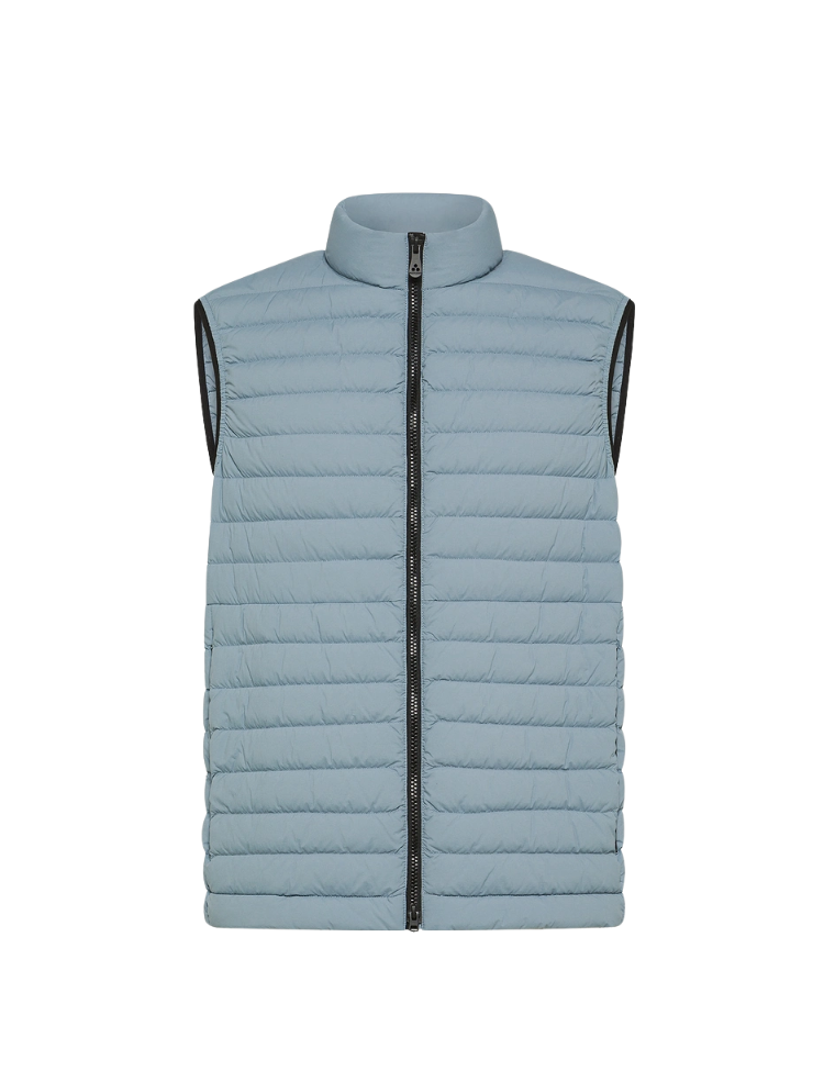 De Peuterey Moise 02 is een licht gewatteerde bodywarmer gevuld met natuurlijk dons en uitgevoerd in ultralicht 20 denier nylon met een subtiel glanzende afwerking. Het model heeft een opstaande kraag, een zwarte ritssluiting met dubbele trekker in contrasterende kleur en handige zijzakken met rits.