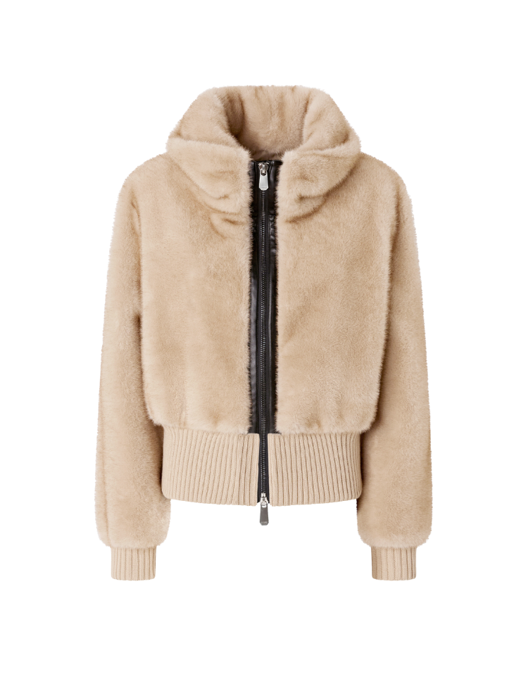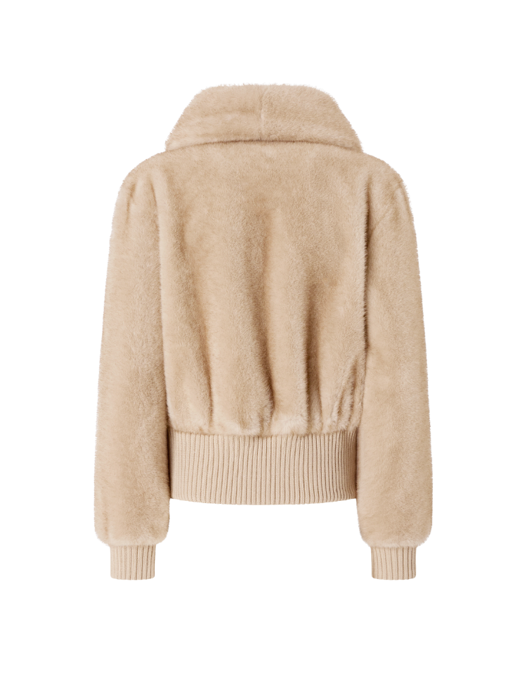 De Pinko Bagels Bomber Jacket Aspen in Beige Moonlight is een kort bomberjack met een opstaande kraag en comfortabele ribboorden aan zoom en mouwen. Dit model is gemaakt van zacht Aspen-materiaal met een bont-effect, heerlijk zacht om aan te raken. De typische aandacht voor detail van PINKO komt terug in de nappaleren biezen langs de tweewegritssluiting aan de voorkant. De jas is volledig gevoerd en houdt je warm tijdens de koudste dagen — als een zachte knuffel in de winter.
