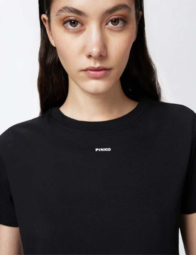 Het Pinko Basico T-Shirt met korte mouwen van katoenjersey met old wash-behandeling, gepersonaliseerd met centrale PINKO-logobedrukking op de voorkant. Verkrijgbaar in meerdere kleuren.