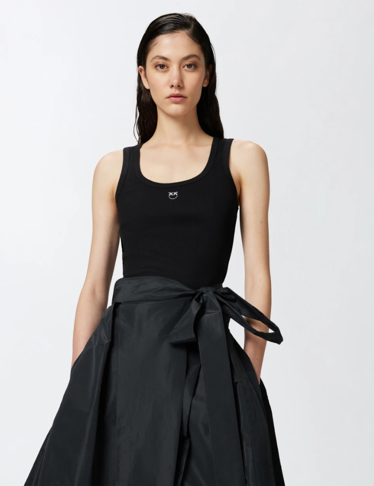 De Pinko Calcolatore Top van geribd gebreid katoen met gemêleerd dessin met een kleine Love Birds logo-applicatie in het midden op de voorkant. De veelzijdige slanke pasvorm, ronde hals en discrete details op maat maken dit vest tot het perfecte stuk om mee te pronken als onderdeel van een alledaagse look, dagen buitenshuis en zelfs op kantoor onder een formele blazer. Verkrijgbaar in meerdere kleuren.