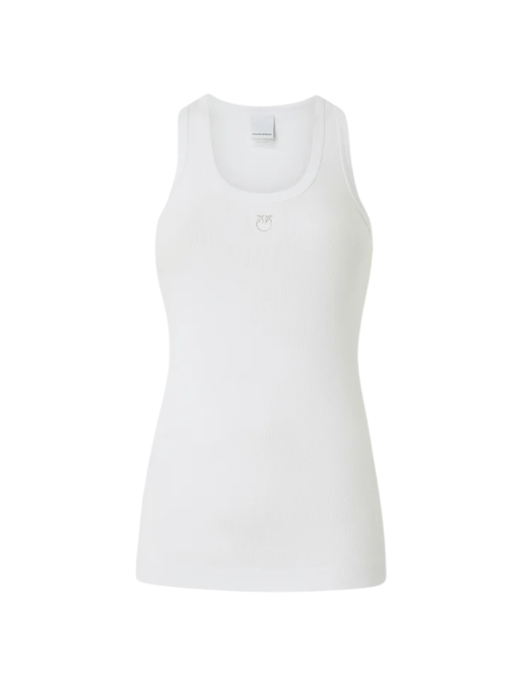 De Pinko Calcolatore Top van geribd gebreid katoen met gemêleerd dessin met een kleine Love Birds logo-applicatie in het midden op de voorkant. De veelzijdige slanke pasvorm, ronde hals en discrete details op maat maken dit vest tot het perfecte stuk om mee te pronken als onderdeel van een alledaagse look, dagen buitenshuis en zelfs op kantoor onder een formele blazer. Verkrijgbaar in meerdere kleuren.