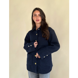 De Pinko Ghiacciolo Jacket in darkness blue is de perfecte mix van tijdloze elegantie en moderne luxe. Deze stijlvolle jas heeft een rechte, iets oversized pasvorm die zorgt voor een comfortabele en trendy look. Gemaakt van hoogwaardige bouclé-stof voelt de jas zacht en luxueus aan, terwijl de subtiele textuur een chique uitstraling geeft. De gouden knopen met logo-details maken dit item extra bijzonder en geven het een verfijnde, vrouwelijke finishing touch.