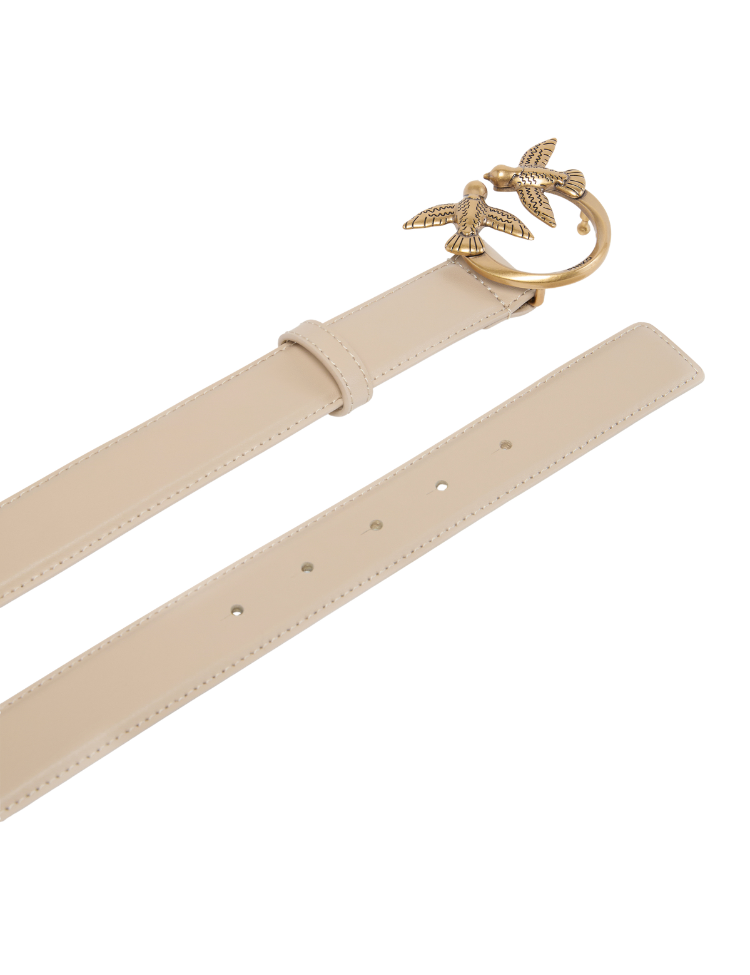 Pinko Love Berry Riem in Beige met Goudkleurige Zwaluw Gesp