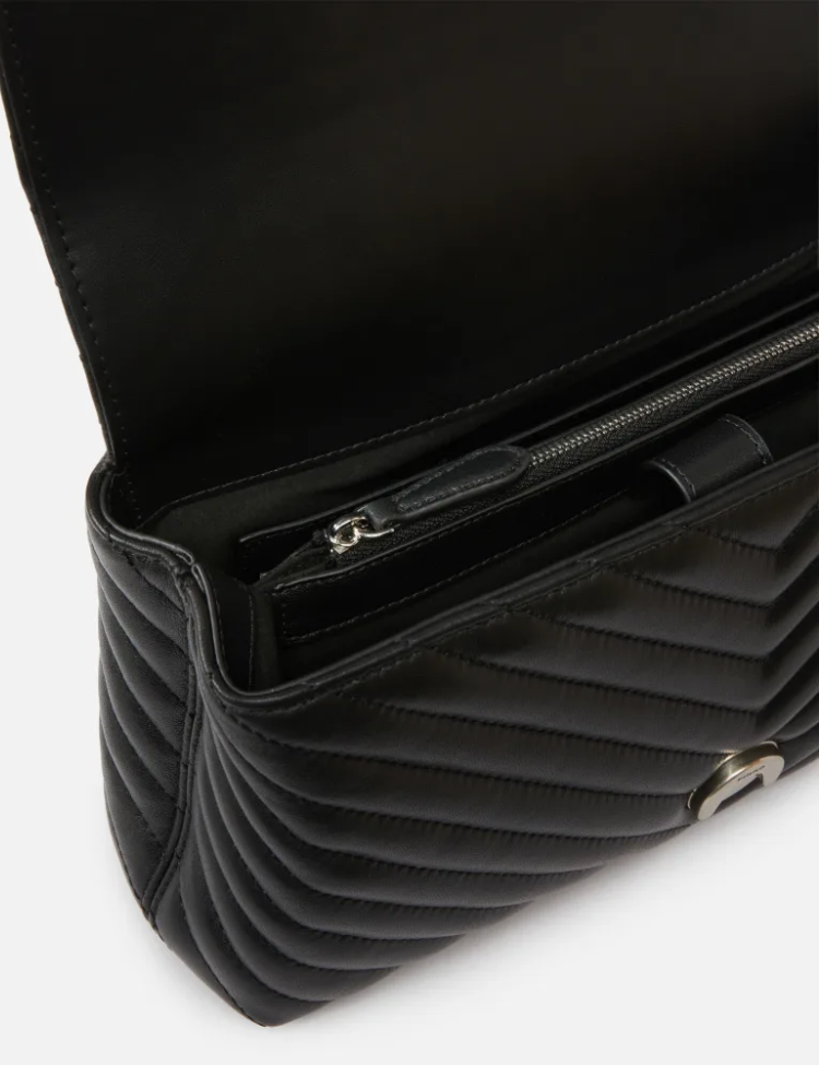 De tas beschikt over een top handle én een afneembare schouderriem met kettingdetail, waardoor je hem zowel chic in de hand als praktisch crossbody kunt dragen. Het interieur is voorzien van meerdere vakken, waaronder een handig ritsvak, zodat je jouw essentials overzichtelijk kunt meenemen.