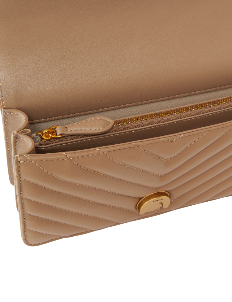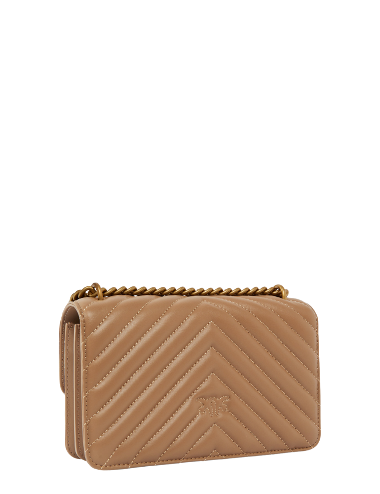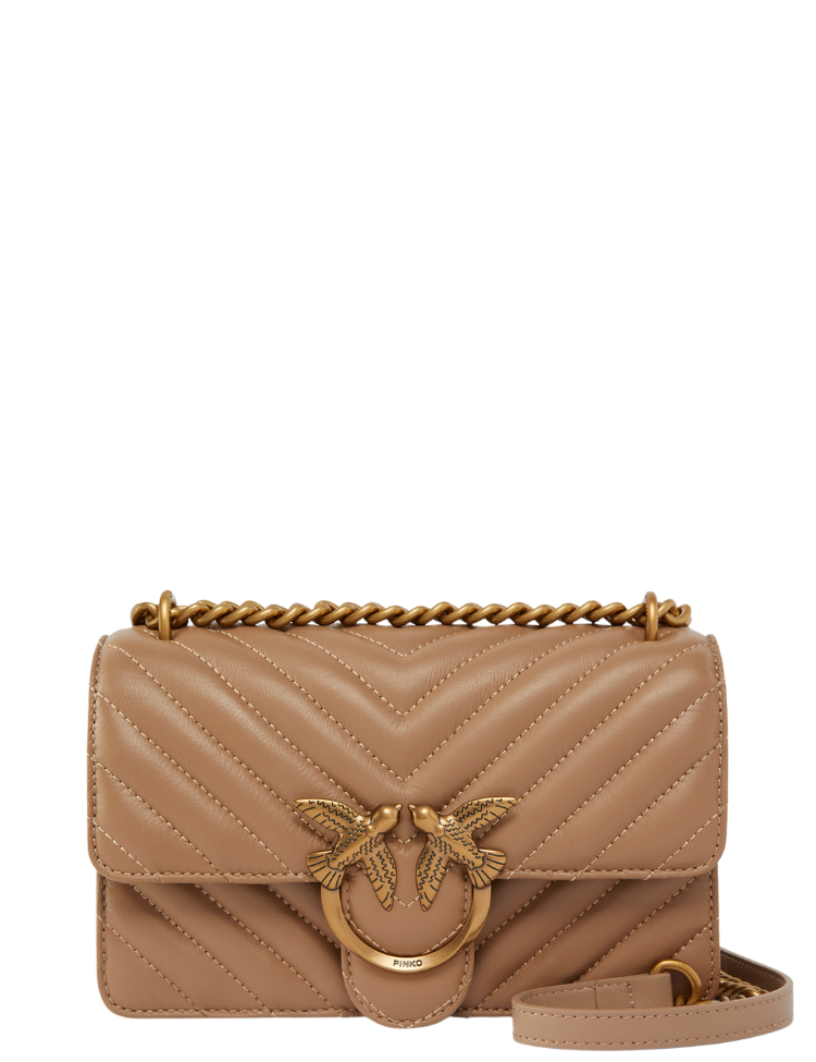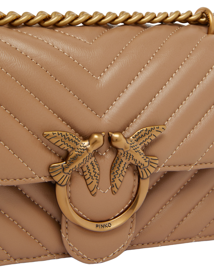 Pinko Love One Mini DC Sheep Nappa Chevron Bag - Biscotto Zenzero-Antique Gold