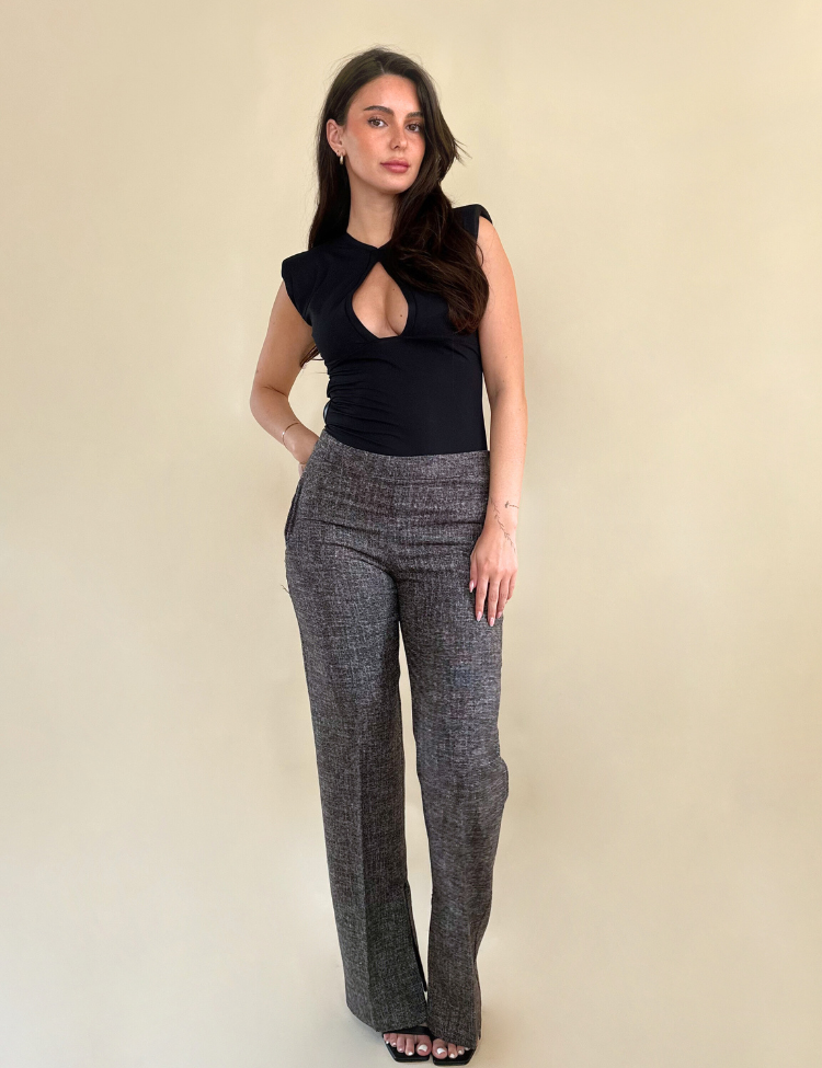 De Pinko Pugliese Trousers zijn de perfecte mix van elegantie en comfort. Deze rechte pantalon heeft een chique, tijdloze snit die je benen optisch verlengt en je een verfijnde look geeft. Het gemêleerde grijs voegt een stijlvolle twist toe, waardoor je deze broek zowel zakelijk als casual kunt dragen.