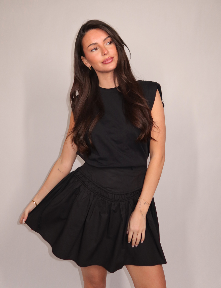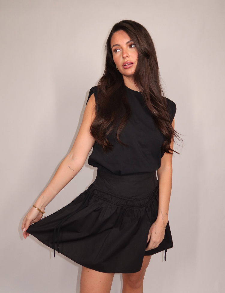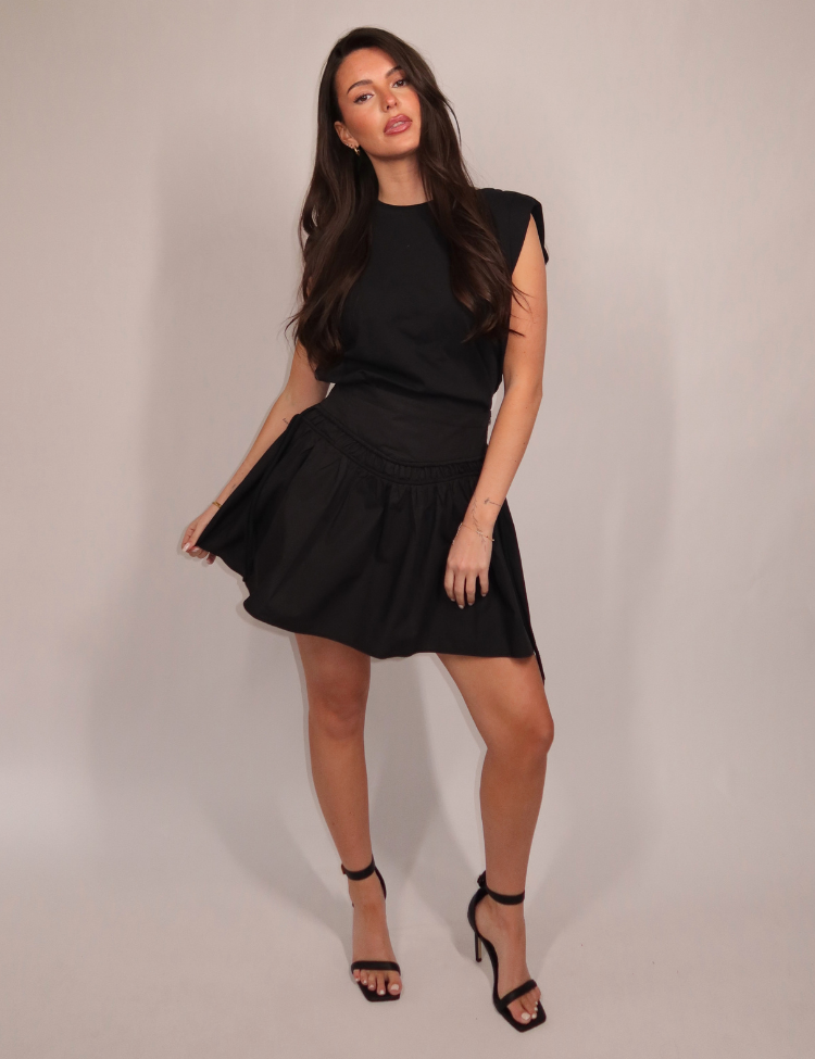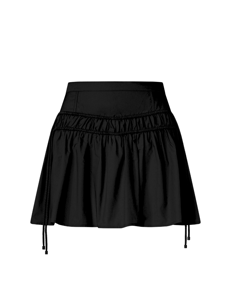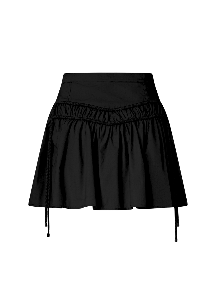 Kleur: Zwart Design: Geplooide, volumineuze rok met elastische tailleband Lengte: Mini Artikelnummer: 106830A2LD