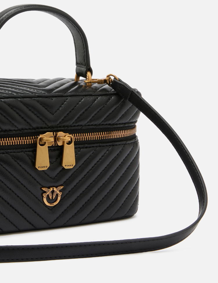 Pinko Vanity Soft Mini Sheep Nappa Handbag - Black/Antique Gold