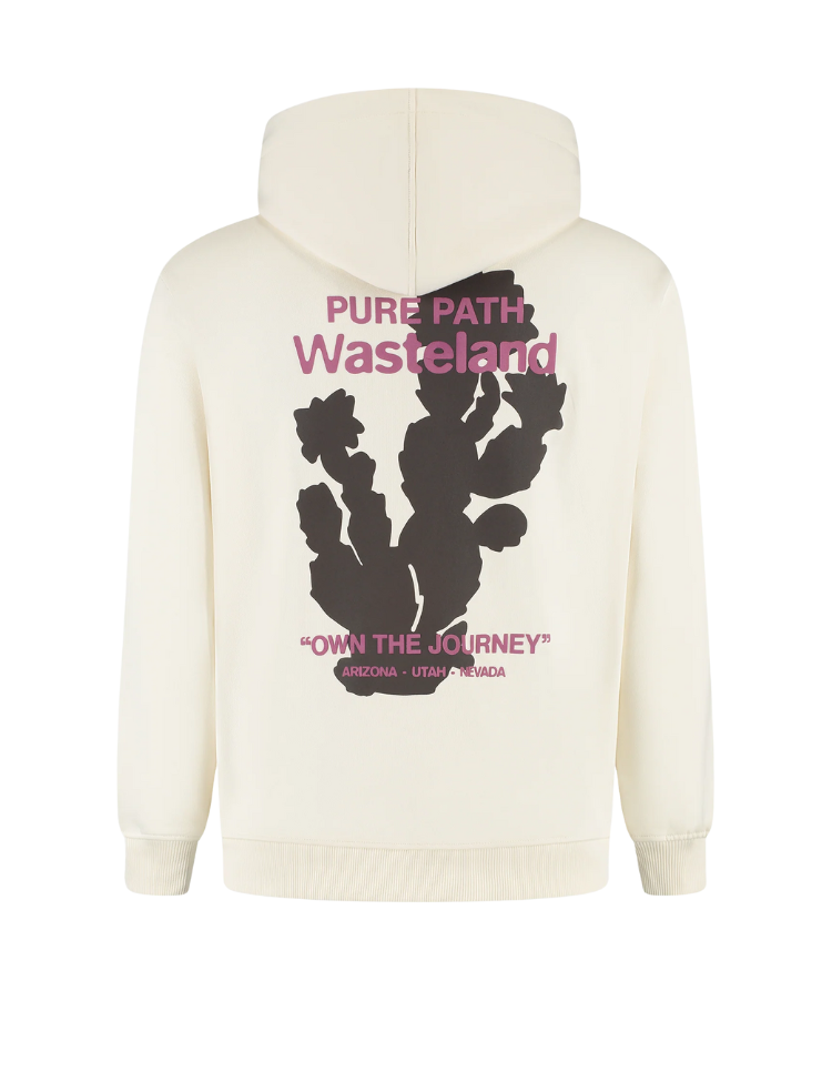 De Pure Path Desert Wasteland Hoodie is een stoere en comfortabele hoodie met een loose fit. Het design is voorzien van een capuchon met trekkoord, lange mouwen en een klein logo op de borst. Op de achterkant komt de hoodie echt tot leven met een opvallende puff en discharge print van de Wasteland graphic en een route door Arizona, Utah en Nevada.