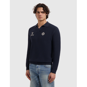 Pure Path Embroidered Braided Knit Polo - Dark Navy