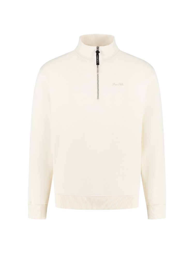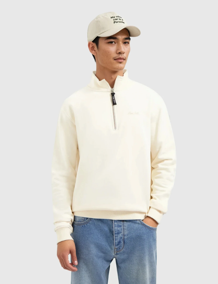 Voeg een stijlvolle klassieker toe aan je garderobe met de Pure Path Embroidery Half-zip Sweater - Ecru. Deze fijngebreide trui is gemaakt van een zachte katoenmix en biedt een luxe, comfortabele fit. De half-zip sluiting en opstaande kraag geven de sweater een moderne, sportieve uitstraling.