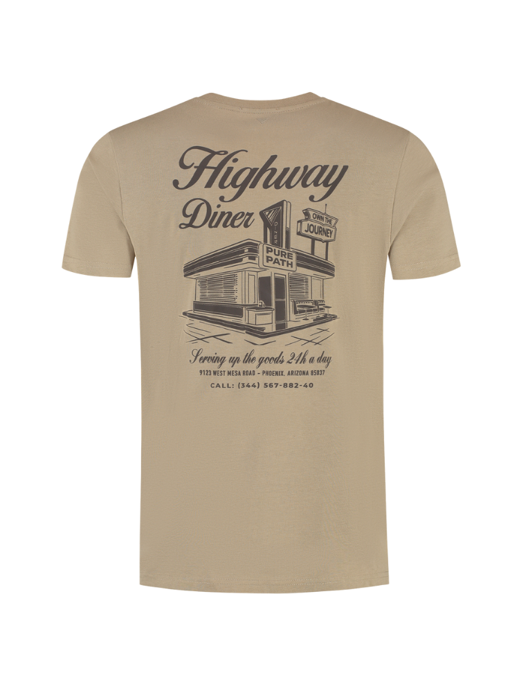 Breng een eerbetoon aan klassieke Amerikaanse diners met het Highway Diner T-Shirt van Pure Path. Dit stijlvolle shirt is vervaardigd van zacht katoen dat comfortabel draagt in elk seizoen. De regular fit biedt een tijdloze pasvorm die mooi aansluit zonder strak te zitten. De eyecatcher? De grote retro diner-print op de achterkant, inclusief opvallende typografie, routeverwijzing en nostalgische details – alsof je zo uit een vintage reisposter bent gestapt.
