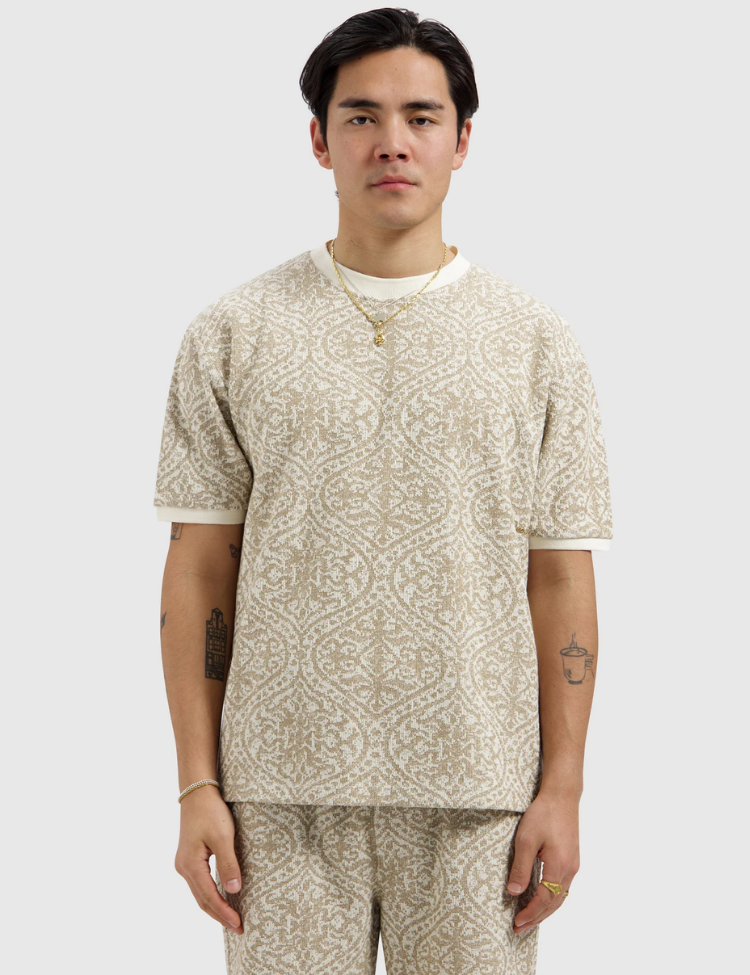 Pure Path Jacquard Pattern T-shirt - Sand
