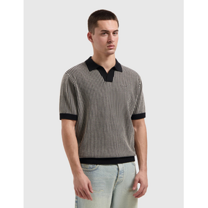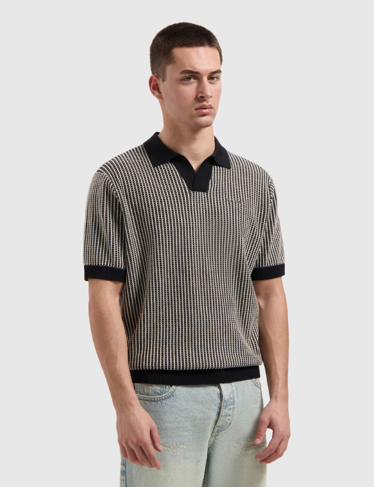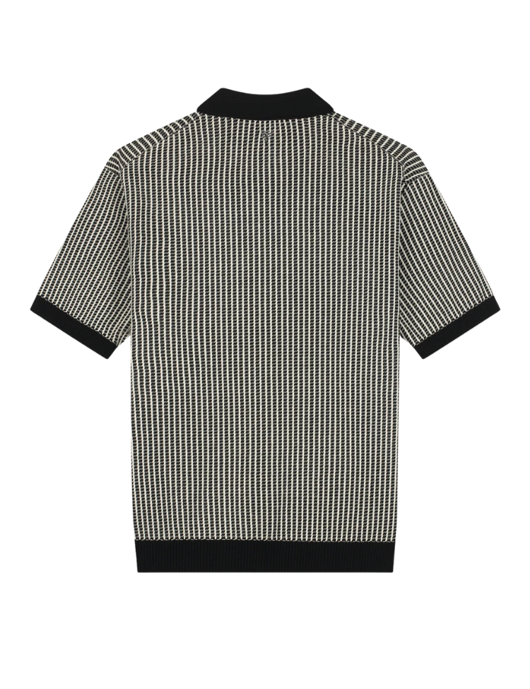 Pure Path Ladder Stitch Knitted Polo - Black