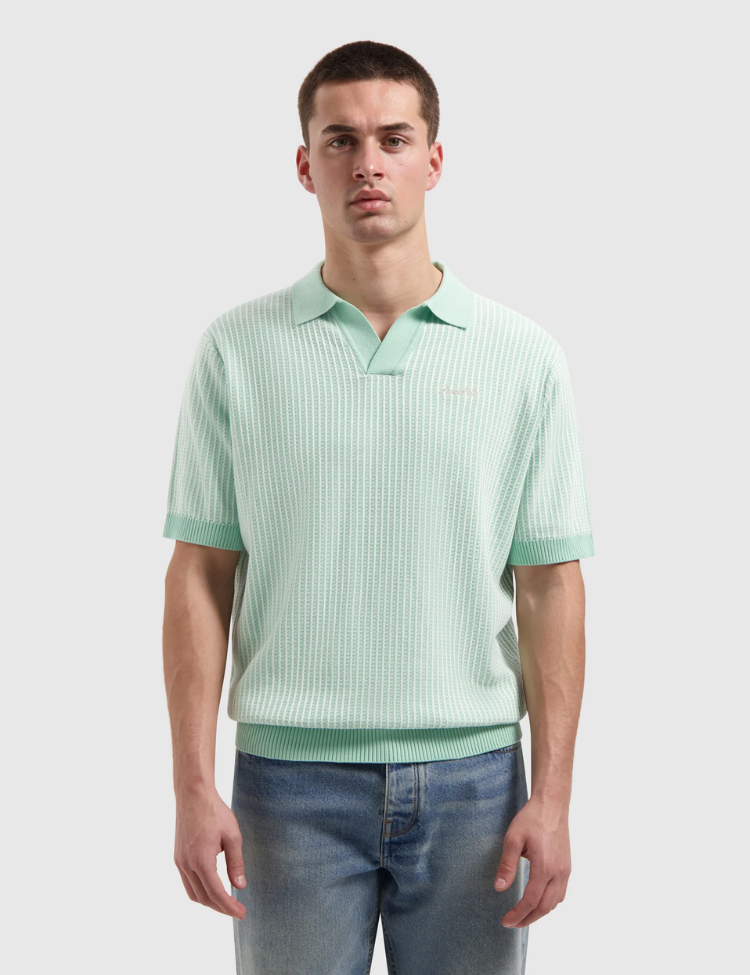 Pure Path Ladder Stitch Knitted Polo - Mint