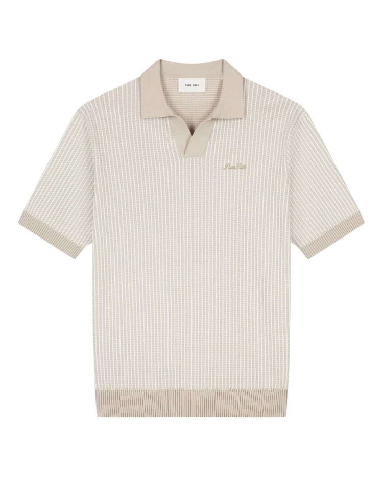 Pure Path Ladder Stitch Knitted Polo - Sand