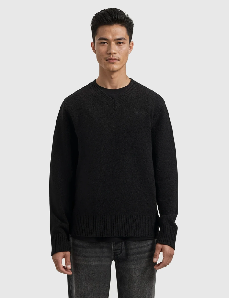Pure Path Melange Knit V-neck Sweater - Black