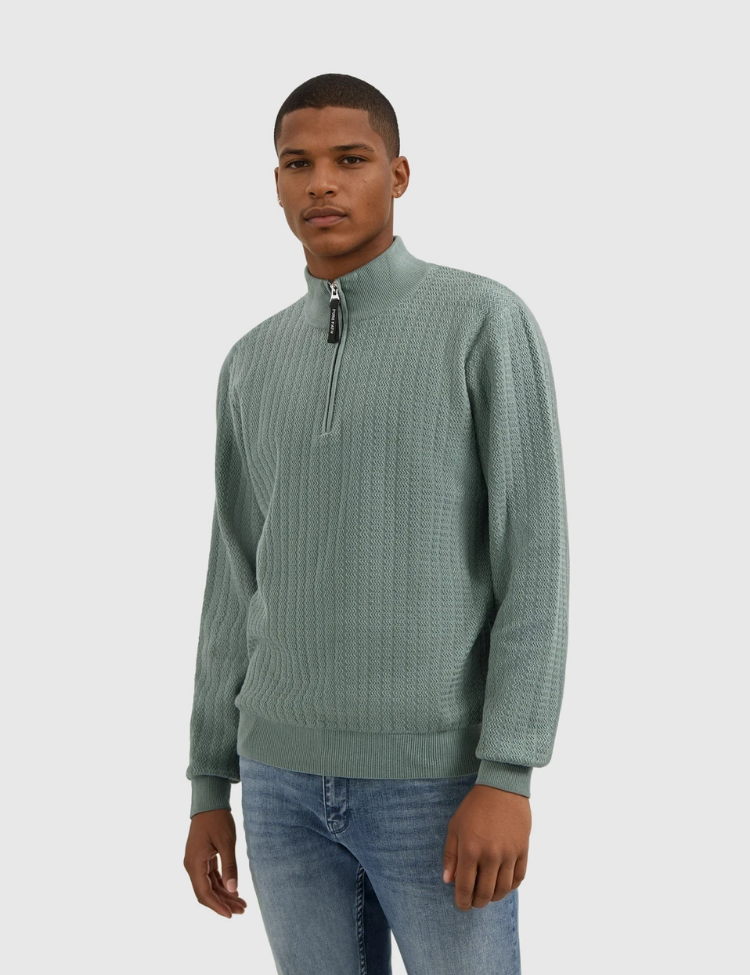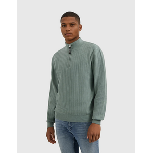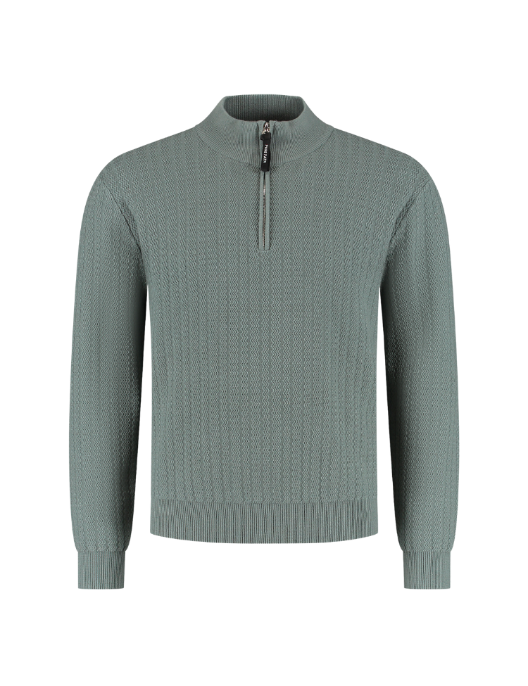 Pure Path Regular fit Zig Zag Half Zip Knitwea - Army Green