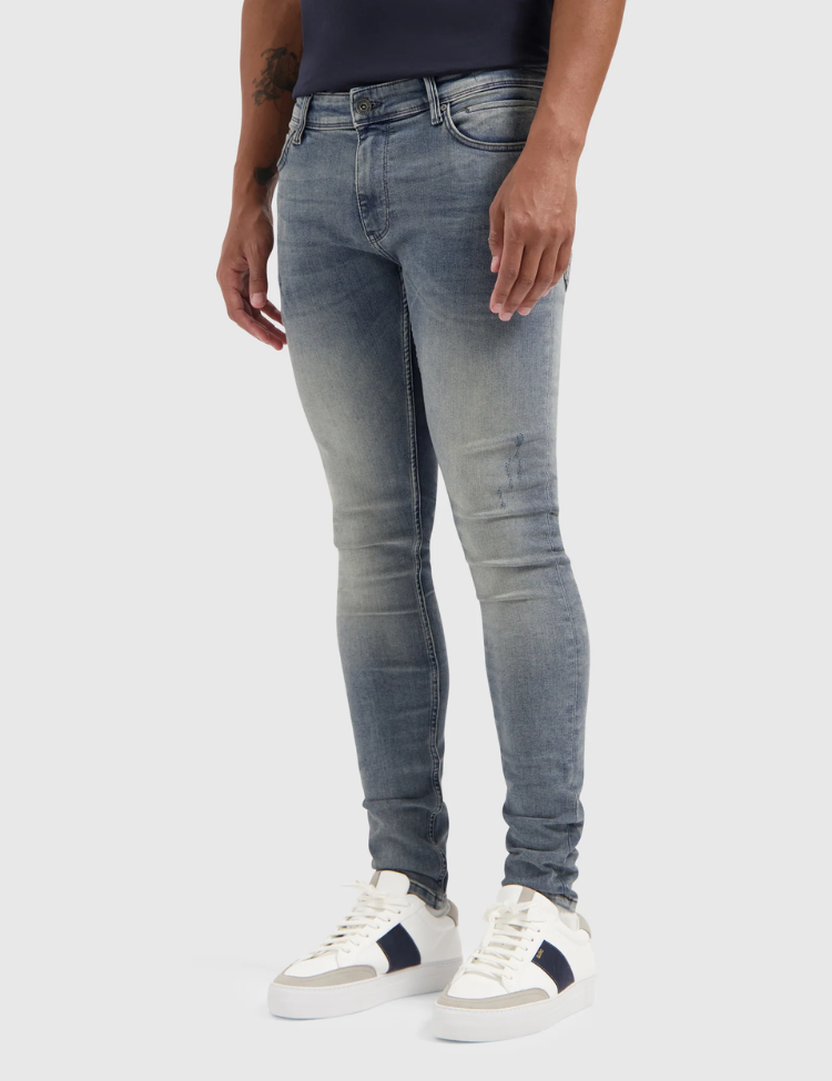 The Jone is een skinny fit jeans in Denim Green/Blue, ontworpen voor wie stijl en draagcomfort zoekt. De stevige geweven denim bestaat uit een combinatie van katoen, polyester en elastaan, aangevuld met Pureflex-technologie voor een vormvast ontwerp en optimale bewegingsvrijheid. Dankzij de enzyme wash en 3D-whiskers krijgt de jeans een authentieke, ingedragen uitstraling. De combinatie van knopen en ritssluiting biedt praktische functionaliteit, terwijl een zwart leren patch op de tailleband voor een verfijnde afwerking zorgt. Op de rechterachterzak, aan de buitenkant, is een subtiele driehoekige borduring van het logo toegevoegd als laatste detail.