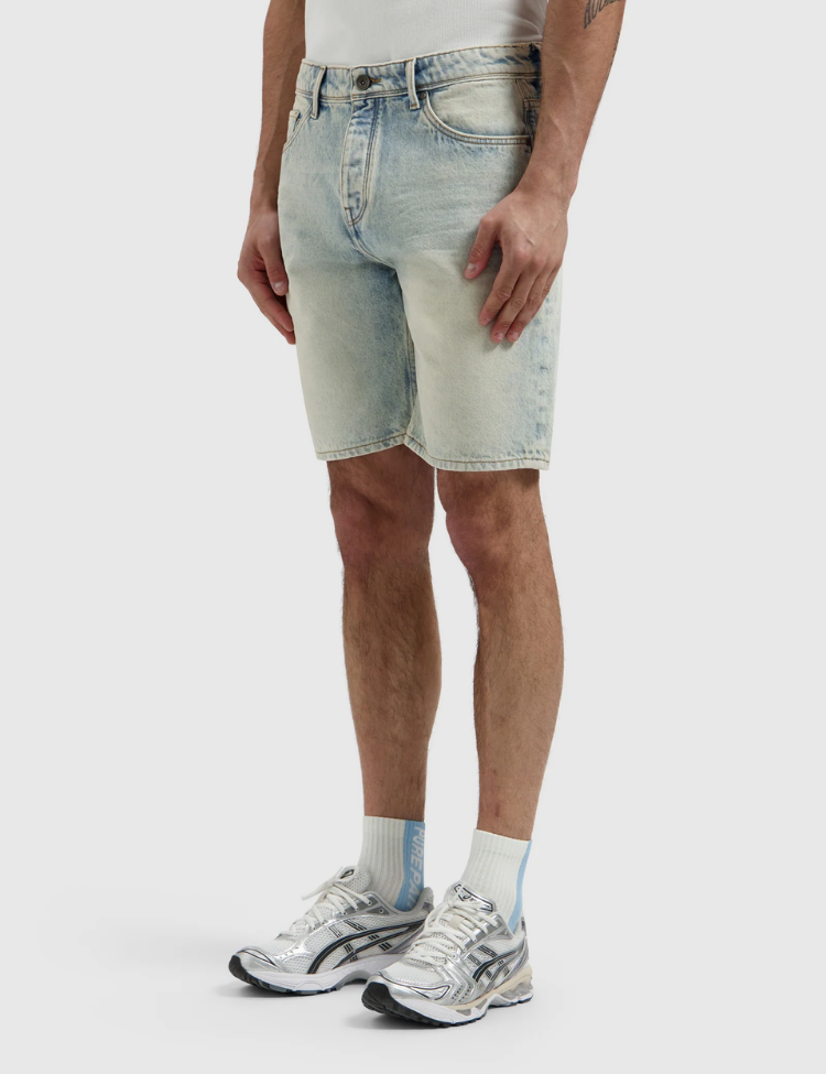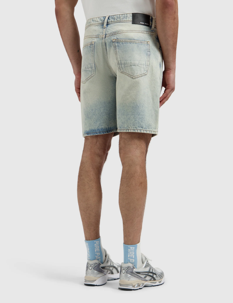 De Pure Path denim short in blue green heeft een regular fit en een licht gewassen denim look. Het jeans short model is uitgevoerd met riemlussen, een knoop en ritssluiting. Voor zie je steekzakken en een coin pocket, achter twee opgestikte achterzakken. De rechte pijp en knielange lengte geven deze korte spijkerbroek een heldere, verzorgde uitstraling.