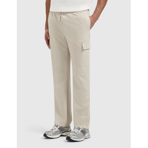 Deze cargobroek van Pure Path in zandkleur is gemaakt van soepele stretchstof. De rechte pijpen zorgen voor een strakke lijn, terwijl de elastische tailleband met koord extra gemak biedt. Aan de zijkanten zitten opgestikte cargozakken met een klep, ideaal voor praktisch gebruik. Aan de achterzijde vind je twee paspelzakken met een subtiele knoop als afwerking. De broek heeft een volle lengte en combineert functionaliteit met een verzorgd silhouet.