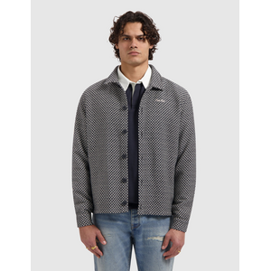 Dit overshirt in dark navy combineert een grafisch jacquardpatroon met een doorknoopsluiting. De klassieke kraag en rechte pasvorm geven het kledingstuk een strakke uitstraling. Het zigzag dessin in twee tinten zorgt voor een subtiele twist op het basic overshirt. De lange mouwen zijn afgewerkt met manchetten en knoopsluiting. Twee borstzakken aan de voorzijde maken het design compleet. Perfect als lichte tussenlaag of als losse laag over een T-shirt.