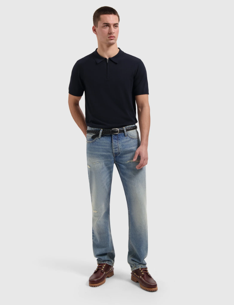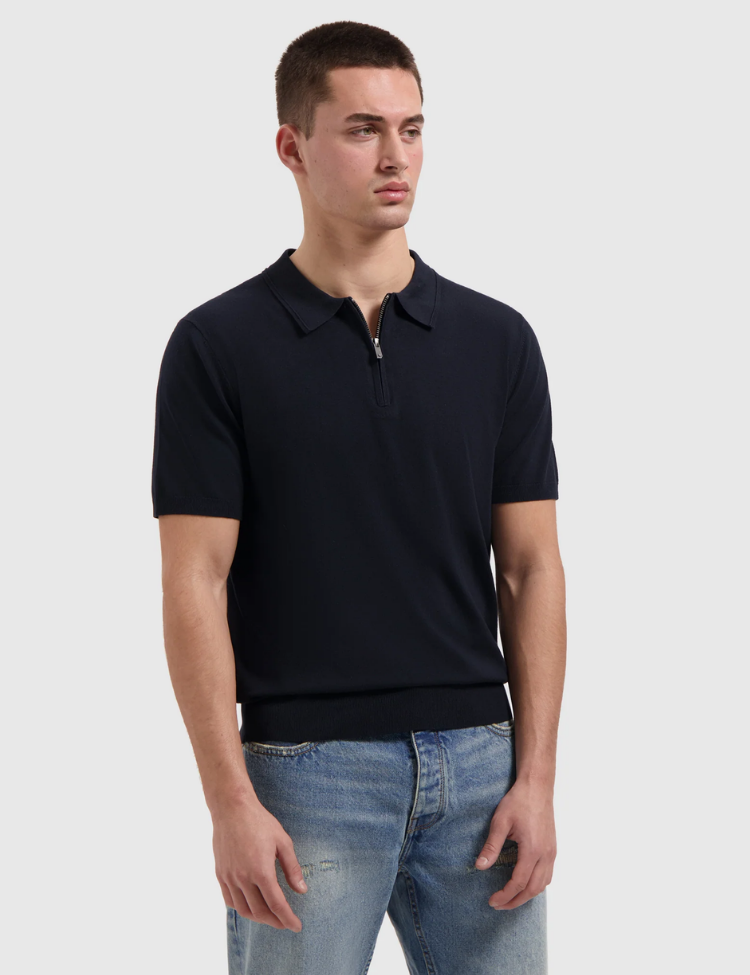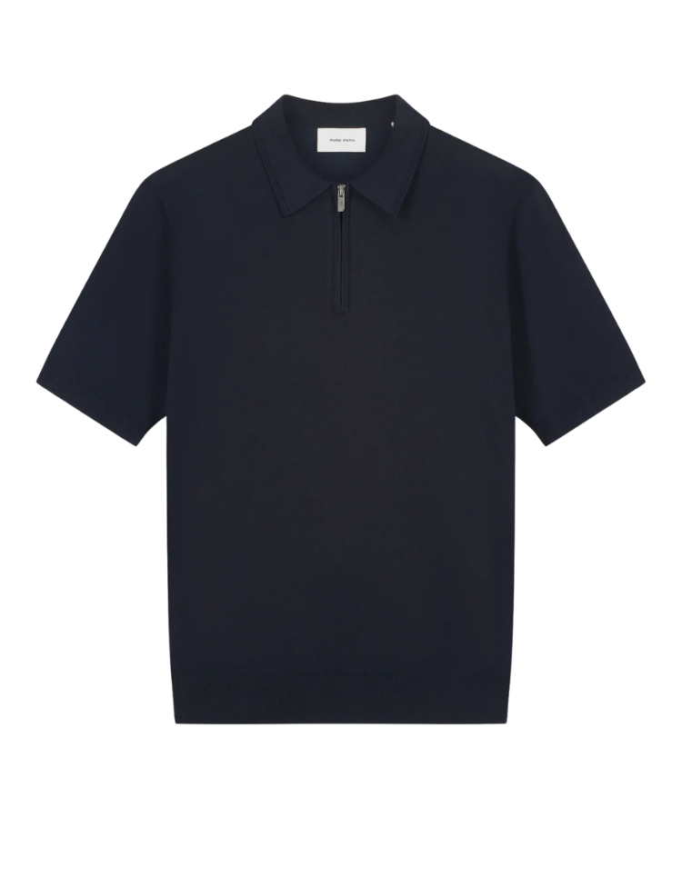 Pure Path Zip Knitted Polo - Dark Navy