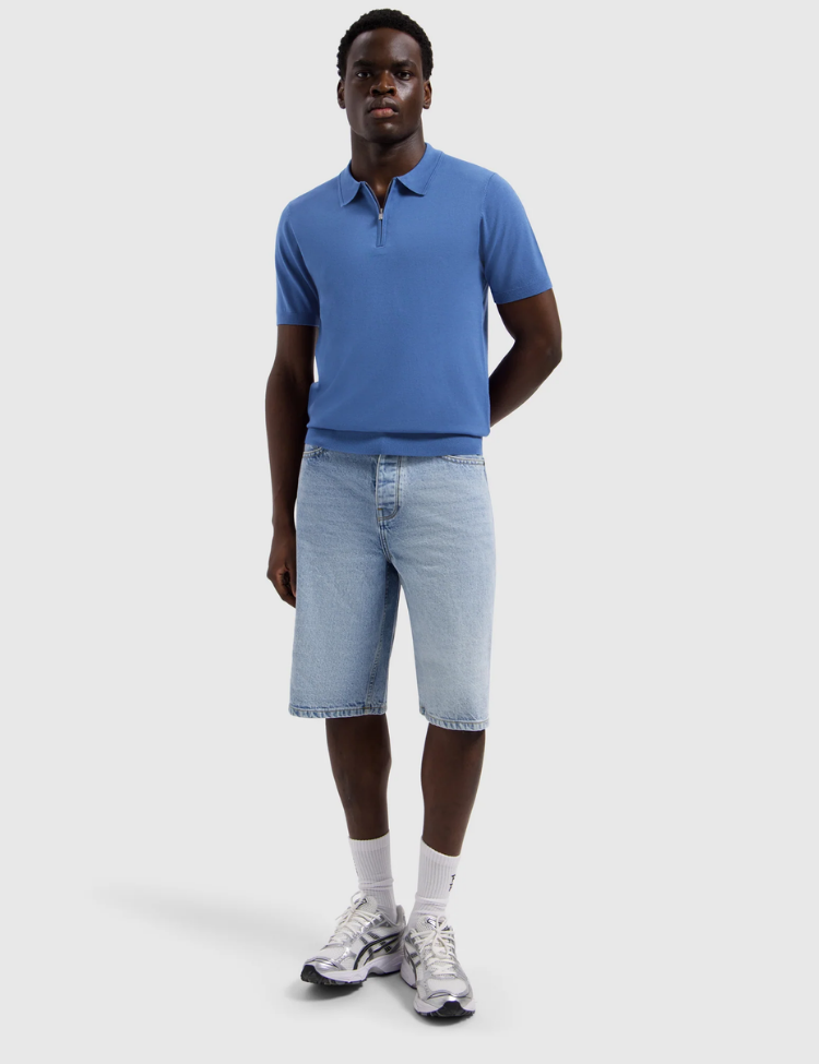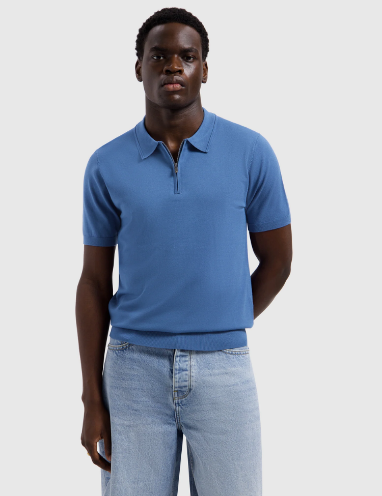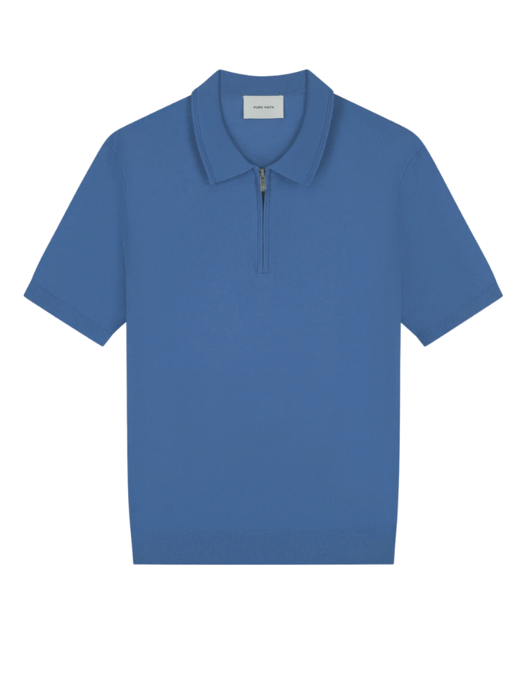 Pure Path Zip Knitted Polo - Faded Cobalt