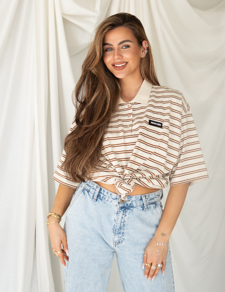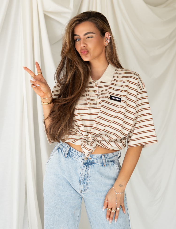Reinders Polo T-Shirt Stripes - Creme