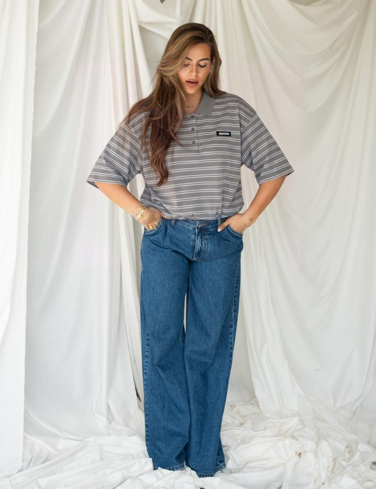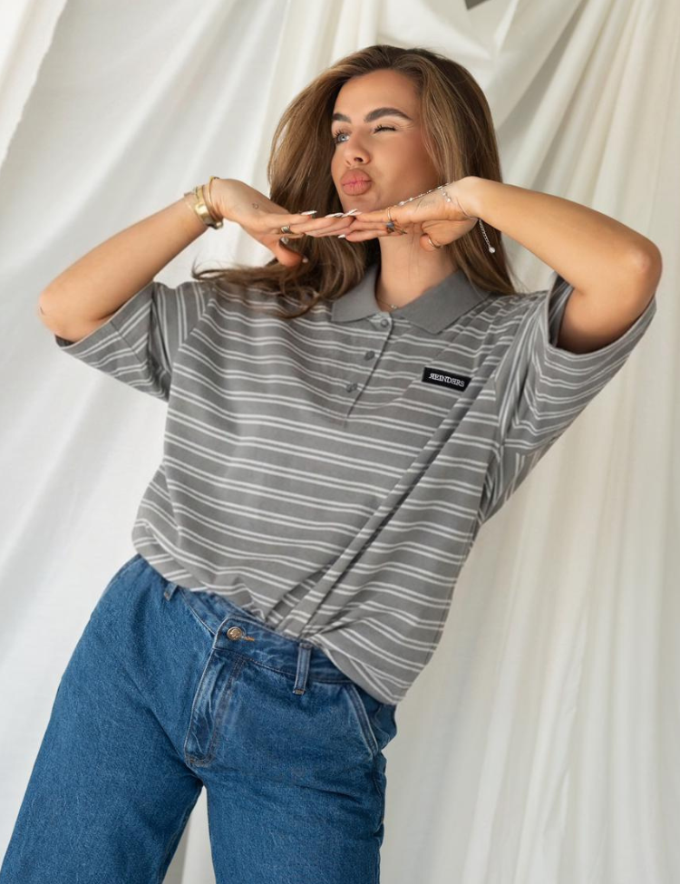 Reinders Polo T-Shirt Stripes - Light Grey Melange