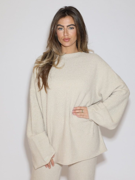 De Winnie Wool Sweater maakt de set compleet met een oversized fit en wijde mouwen. Het zachte materiaal geeft een cozy uitstraling, terwijl de relaxte pasvorm ervoor zorgt dat je zowel casual als stijlvol voor de dag komt. Dankzij de veelzijdigheid draag je deze set zowel thuis in comfort als buiten met sneakers of laarzen voor een modieuze look.