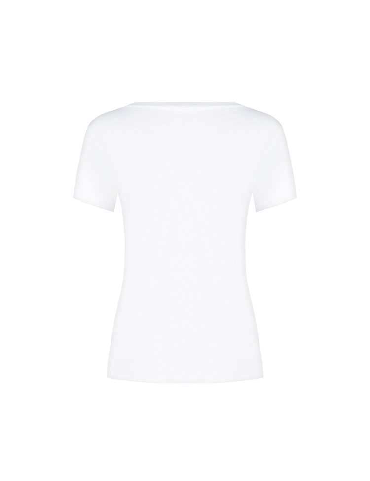 Gemaakt van een zachte, comfortabele stof die fijn aanvoelt op de huid en ideaal is voor elke dag. Combineer dit T-shirt casual met een denim jeans en sneakers voor een effortless look, of draag het chic in een high-waist rok met loafers of hakken. Perfect voor zowel een dag in de stad als een casual-chique diner.