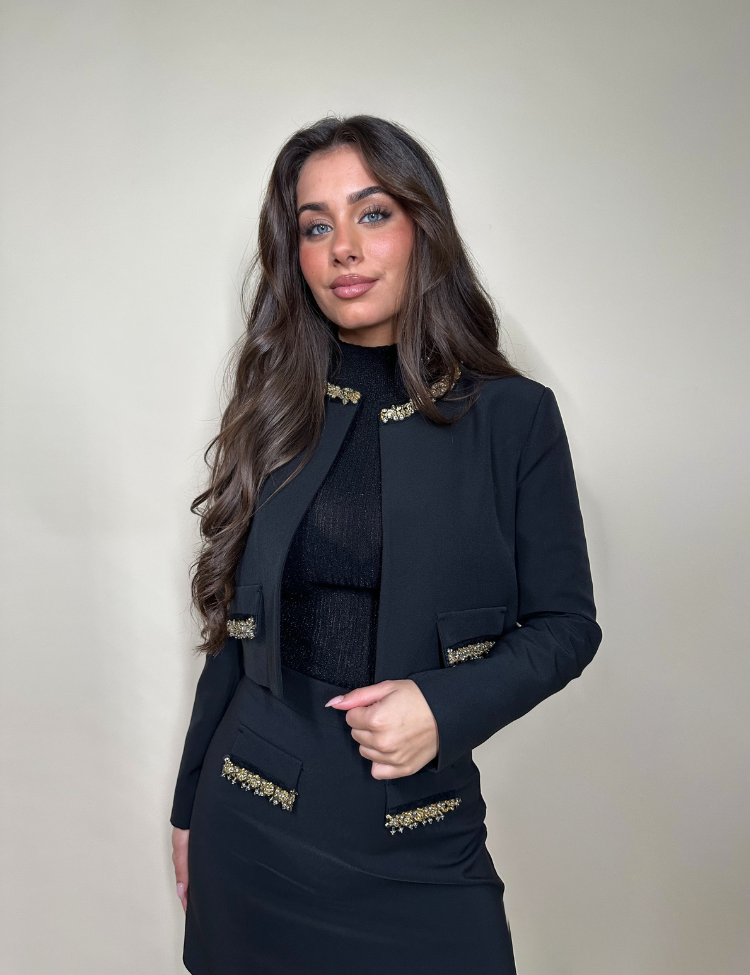 Perfect om te dragen over een jurk of een chique top, ideaal voor feestelijke gelegenheden en avonden uit. Combineer de Gia Bolero met de Gon Skirt voor een stijlvolle, bijpassende co-ord look.