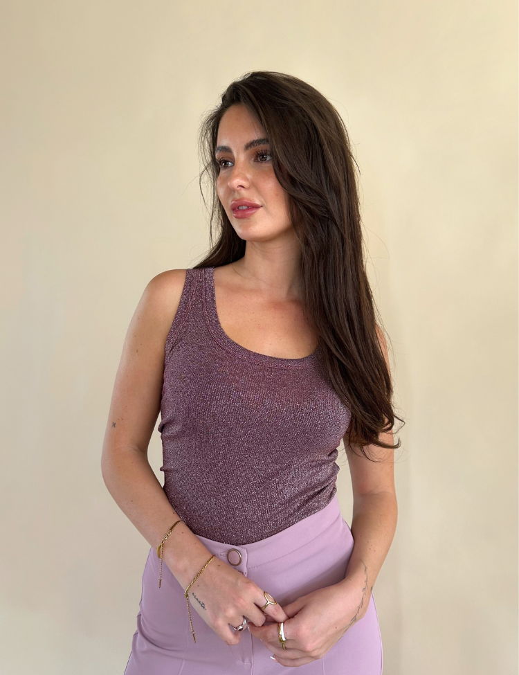 Shine all day in deze stijlvolle lurex top van Rinascimento. Dankzij de subtiele glitterdraad en aansluitende pasvorm straalt dit mouwloze model pure elegantie uit. De ronde halslijn zorgt voor een vrouwelijke en tijdloze look, terwijl de stretchkwaliteit zorgt voor ultiem draagcomfort.